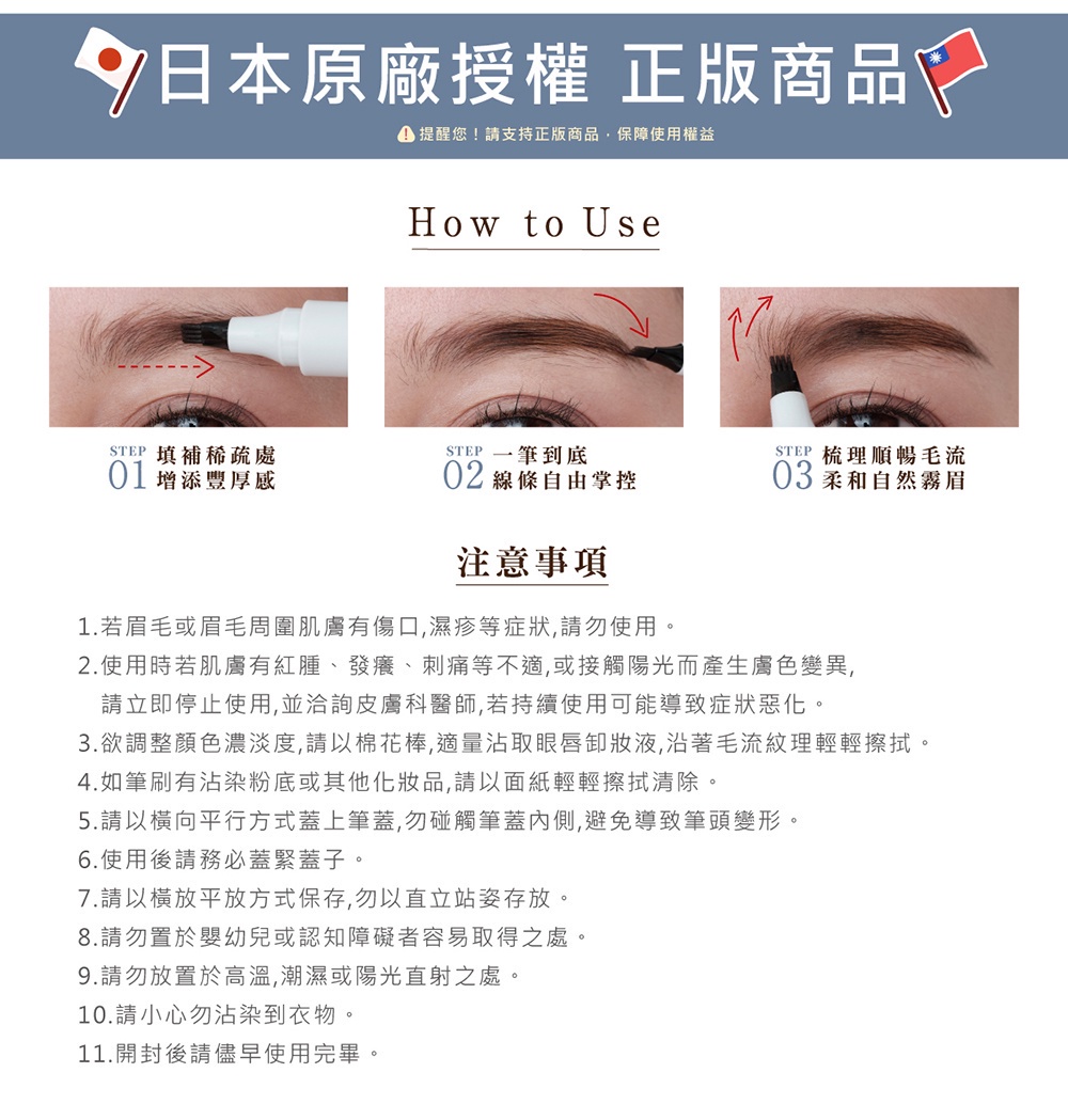 1.若眉毛或眉毛周圍肌膚有傷口,濕疹等症狀,請勿使用。